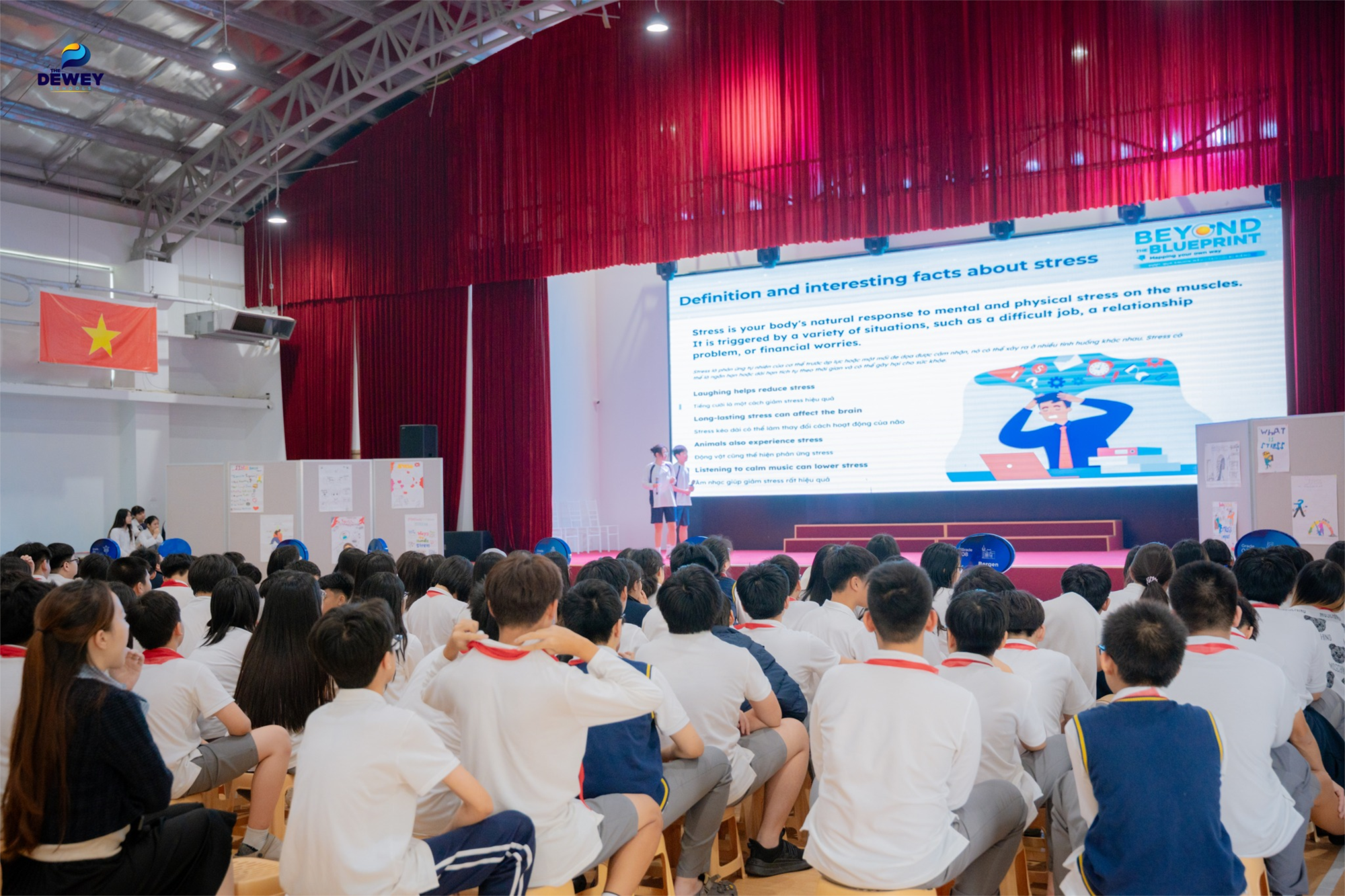 Bên cạnh đó, học sinh khối 9 cũng trở thành “đầu tàu” trong chiến dịch lan tỏa thông điệp “hiểu mình – hiểu bạn”, góp phần nâng cao nhận thức về sức khỏe tinh thần trong cộng đồng học đường. Thông qua buổi thuyết trình tự tin và đầy cảm hứng, các bạn đã đem tới một góc nhìn tổng quát về các loại áp lực khác nhau, hướng dẫn các biện pháp giúp giảm stress, lan tỏa tinh thần tích cực trong cộng đồng học sinh.