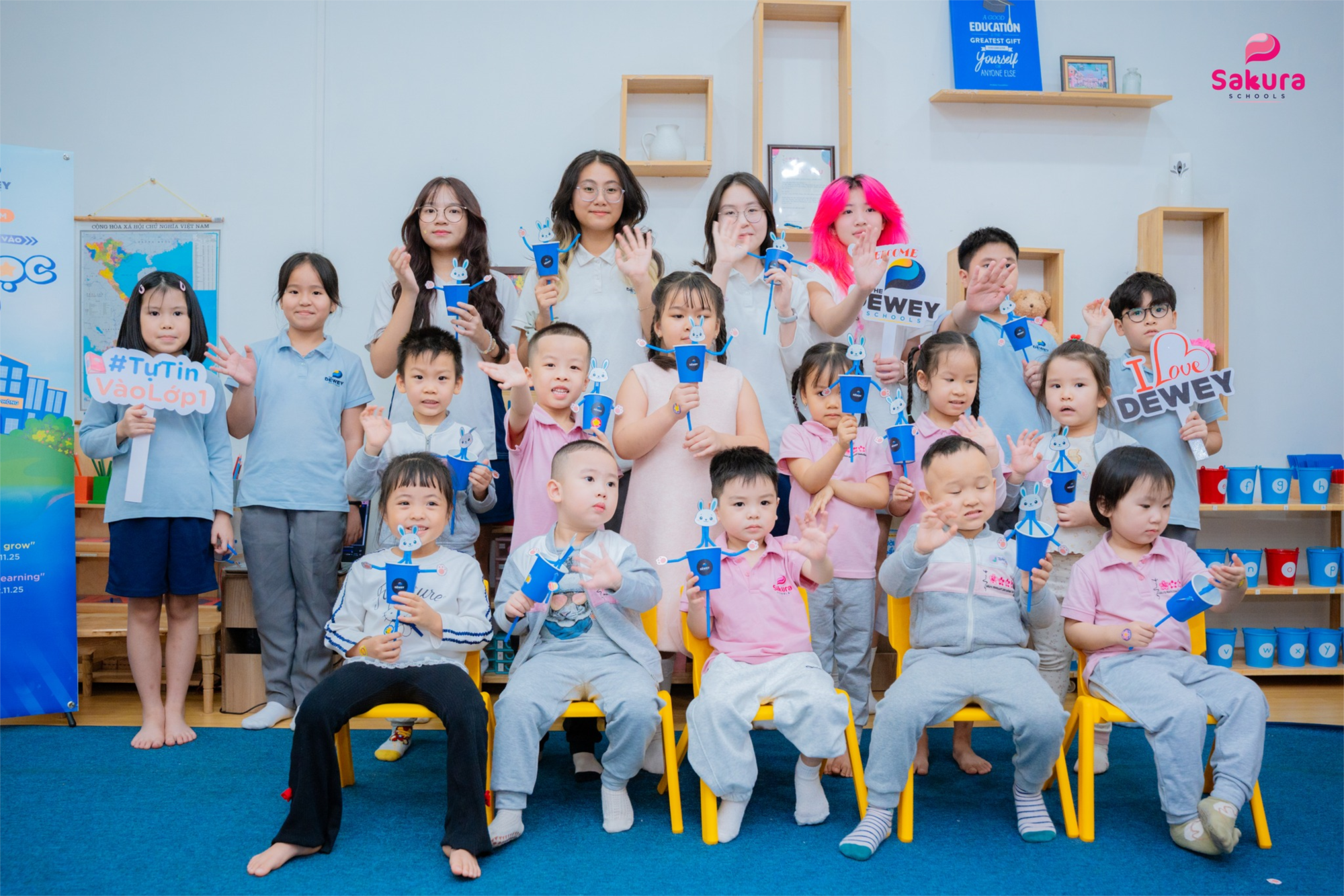 Ba mẹ ơi, lớp học Sakura của con hôm nay khác hẳn ngày thường. Chúng con được Thử làm Học sinh Tiểu học cùng các anh chị Dewey đó!