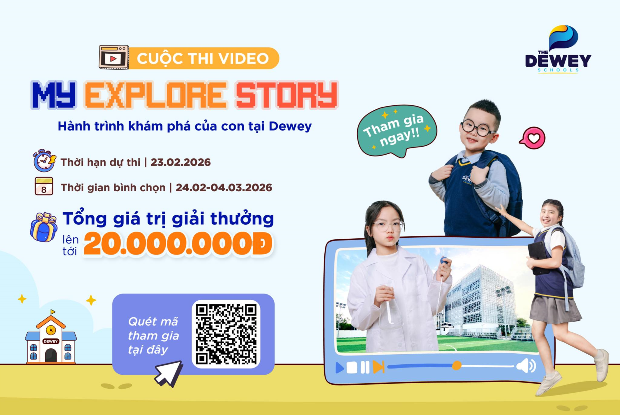 Với mong muốn lắng nghe và lan tỏa hành trình đẹp đẽ ấy, Dewey Hải Phòng phát động cuộc thi video “My Explore Story – Hành trình khám phá của con tại Dewey”, nơi ba mẹ và các con cùng nhìn lại những thay đổi tích cực, sự tiến bộ từng ngày và những trải nghiệm đáng nhớ thông qua những câu chuyện do chính con kể lại.