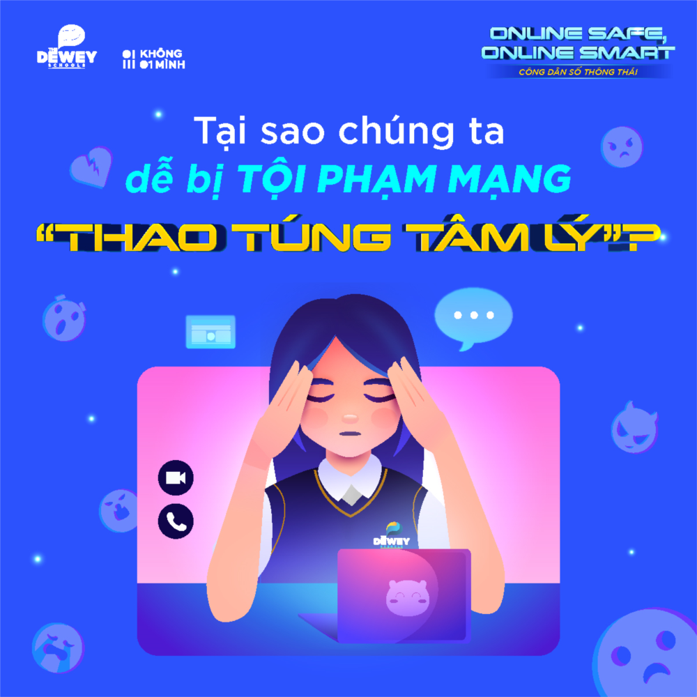 Hãy cùng tìm hiểu những kỹ thuật thao túng tâm lý tinh vi của tội phạm an ninh mạng qua bộ ảnh dưới đây! Thông tin được Học sinh The Dewey Schools tổng hợp trong khuôn khổ Cuộc thi Online Safe - Online Smart. Hy vọng đây sẽ là cẩm nang hữu ích để mỗi Học sinh sớm phát hiện và cảnh giác trước những chiêu trò lừa đảo trên không gian mạng!